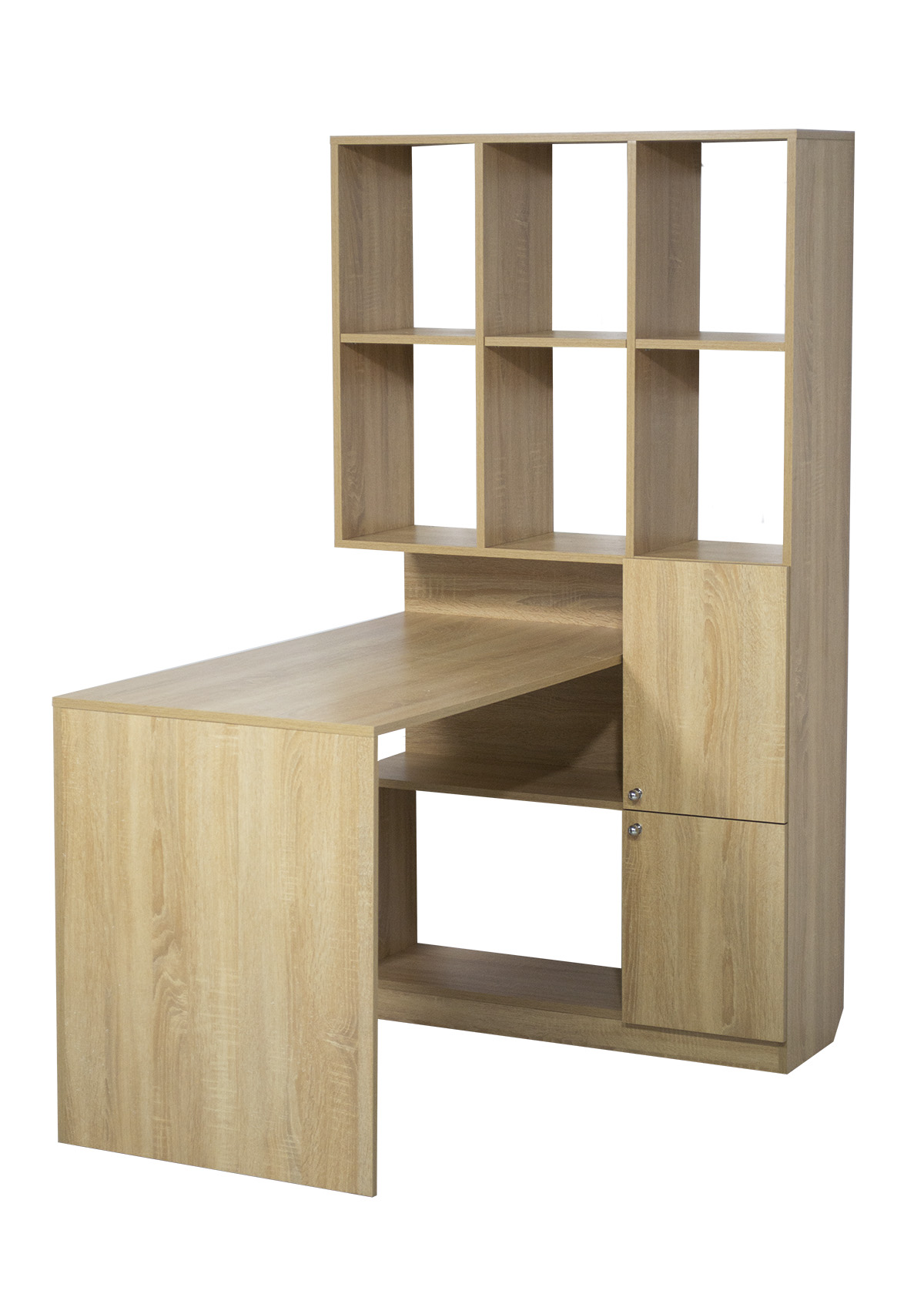 Компьютерный стол БН-06-05 с многофункциональной конструкцией, объединить рабочую зону с продуманной системой хранения. Широкая столешница совмещена со стеллажом, что позволит максимально удобно разместить все необходимое в работе.