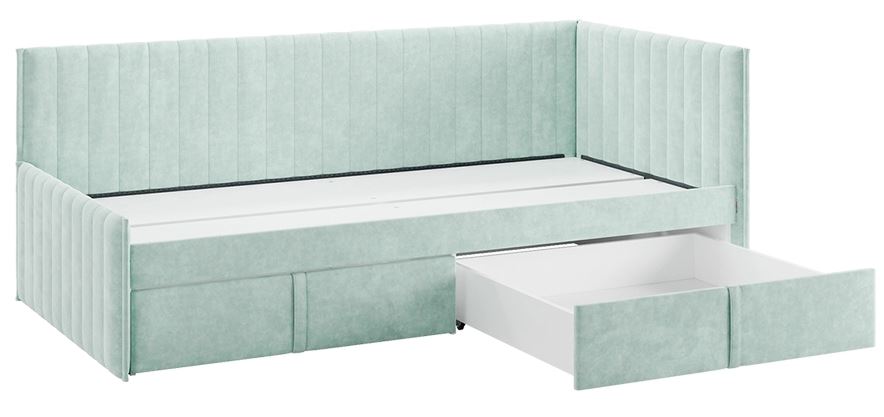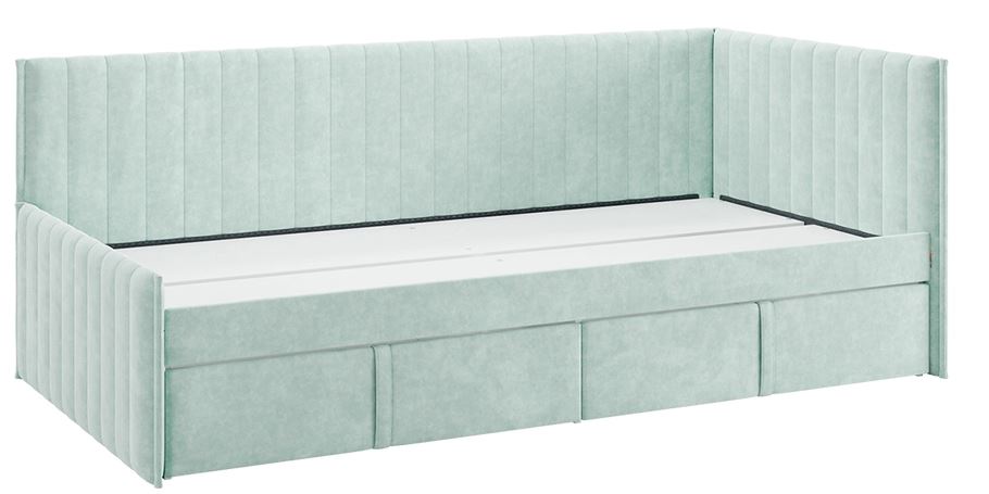 Кровать - тахта «Твикс» с ящиками размером 90x200 см в цвете «мята» (велюр) — это стильное и функциональное решение для спальни или детской комнаты