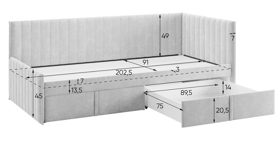 • Вместительные ящики: под спальным местом находятся выкатные ящики для хранения постельного белья, одежды или игрушек.