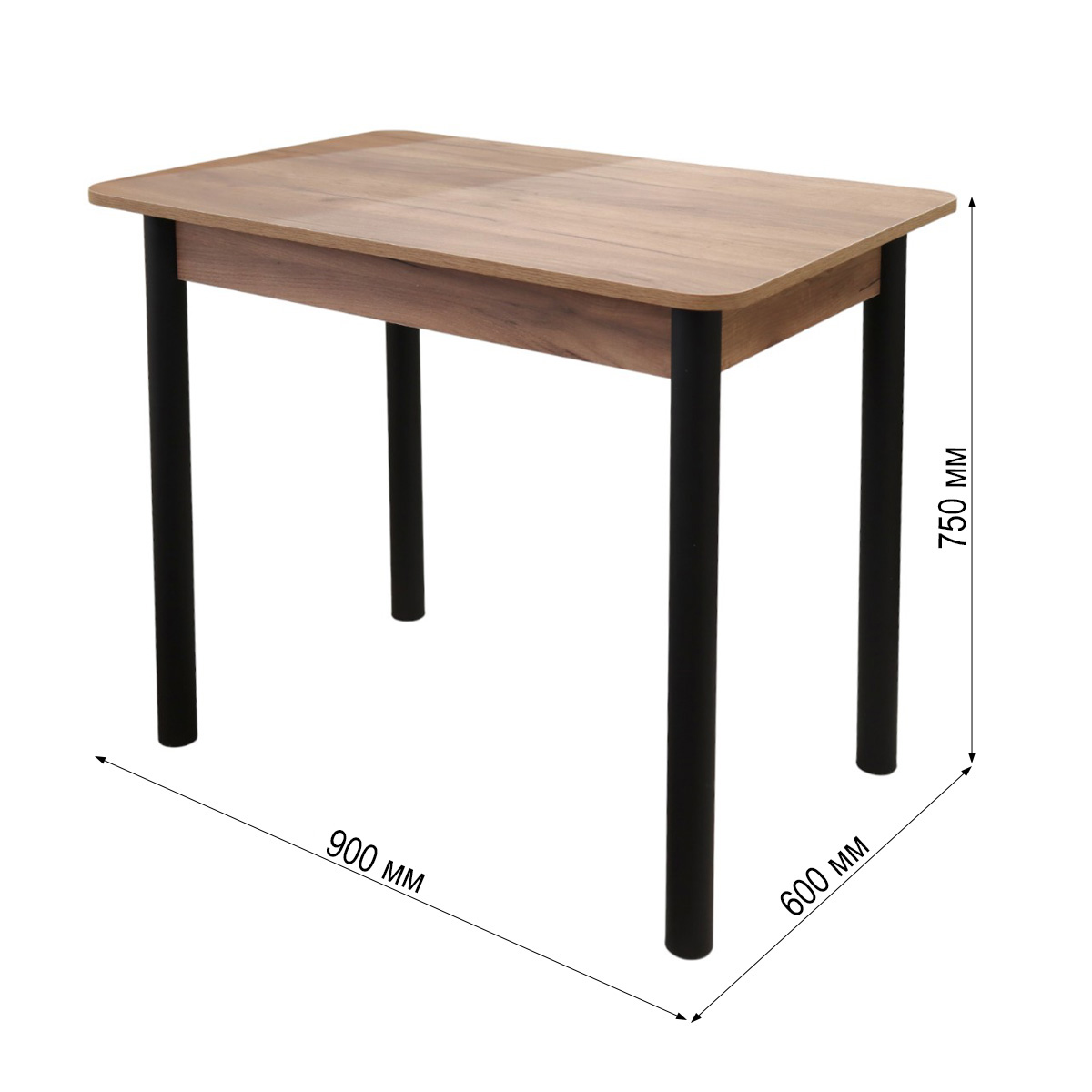 Стол обеденный (900х600х760) Дуб крафт табачный/черный