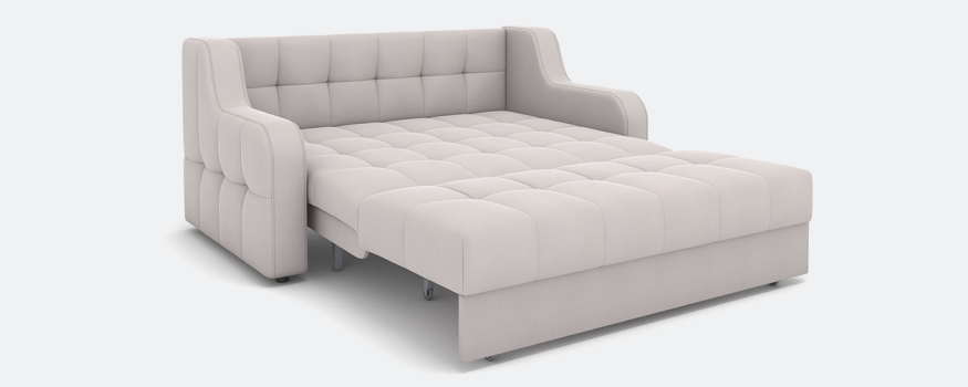 В основе дивана — надежный механизм трансформации «аккордеон». Простое движение превращает его в просторное спальное место с ровной и высокой поверхностью (ширина от 84 до 184 см), что гарантирует комфортный отдых без перепадов высоты.