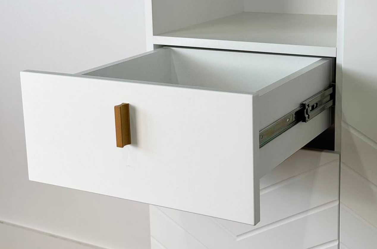 Фасады: МДФ с матовой плёнкой ПВХ и фрезеровкой.