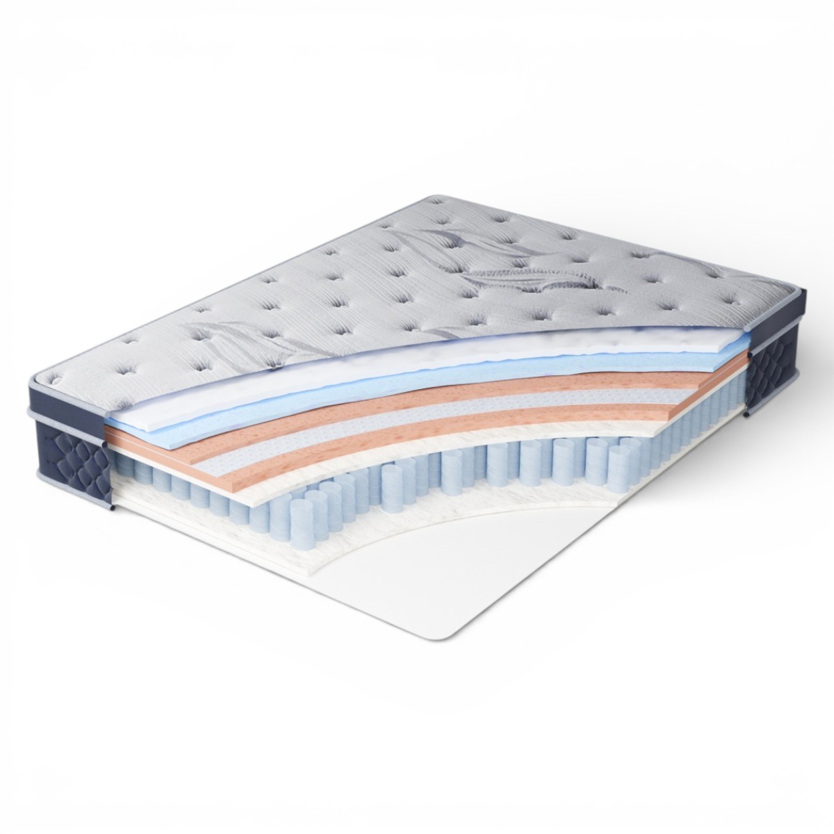 Обеспечивает оптимальную жесткость, сглаживает переходы между слоями и продлевает срок службы пружинного блока, создавая прочное и комфортное основание. -